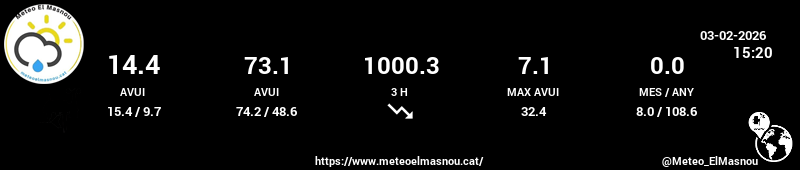 • Estación: Mis estaciones: EL MASNOU-Ocata ESCAT0800000008320D, BADALONA Dalt la Vila ESCAT0800000008911C, EL MASNOU Ocata2 ESCAT0800000008320G