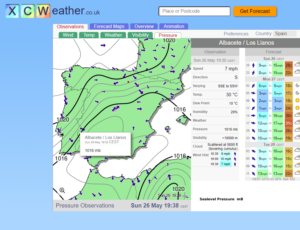 https://xcweather.co.uk y seleccionar el pais, y luego la pestaña Pressure