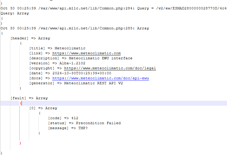 El paquete o query es rechazado porque el servidor no encuentra la temperatura, pero en realidad no había datos.....ya te digo que se produjo ese día y el 29 de octubre....una vez cada día.....luego no se ha vuelto a reproducir. En la estación de Villagalijo no he encontrado nada en los últimos días.