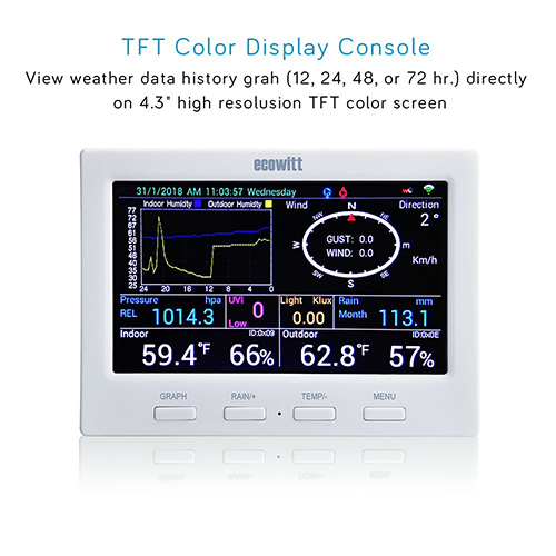 Aparentemente iba a ser el buque insignia de Ecowitt, ya que disponía de lector de SD para actualizar firmware y para realizar funciones de datalogger, y dispone de puerto USB que también valía para actualizar firmware y conectar a ordenador.