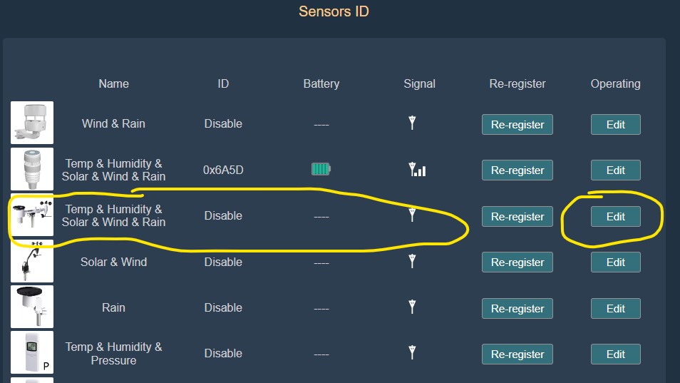 Si marcando esa opción sigue sin enviar bien los datos de precipitación, tendrás que deshabilitar la recepción del WH65/WS69 en la configuración Sensors Id