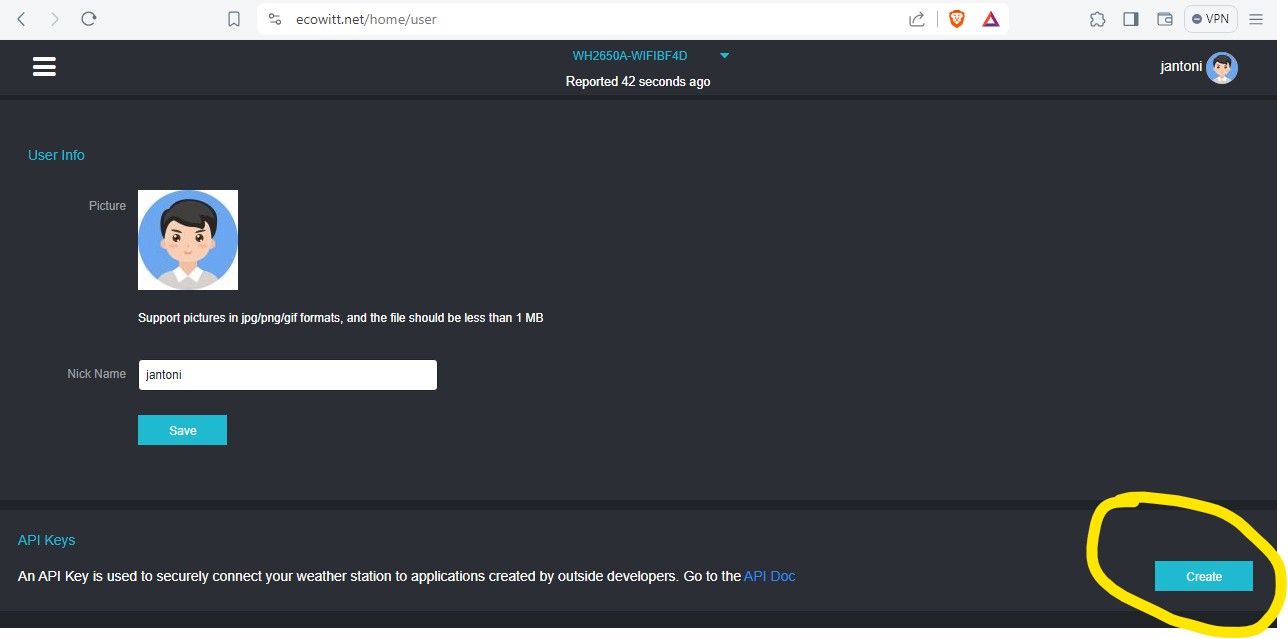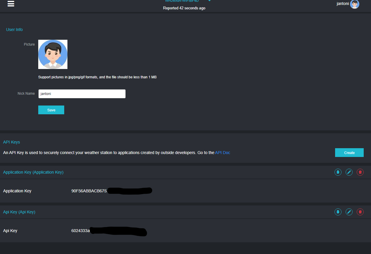 Obtener Application Key y API Key en EcowittEstos dos palabros nos indica una especie de "contraseña" que Ecowitt nos facilita para poder identificarnos con nuestro programa y poder recuperar datos desde ecowitt.net