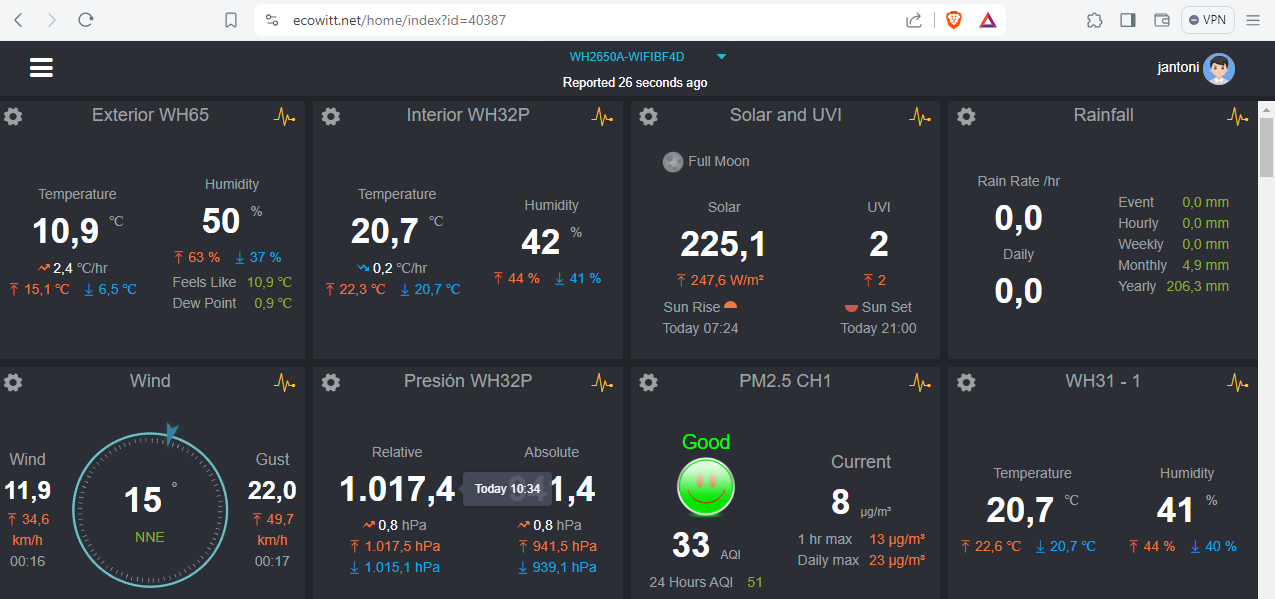 Al hacer click en Devices, nos mostrará la lista de dispositivos registrados en Ecowitt.net