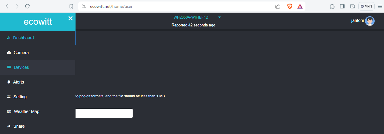 https://ecowitt.net nos vamos a la lista de dispositivos, que tendremos arriba a la izquierda (en las tres rayitas horizontales)