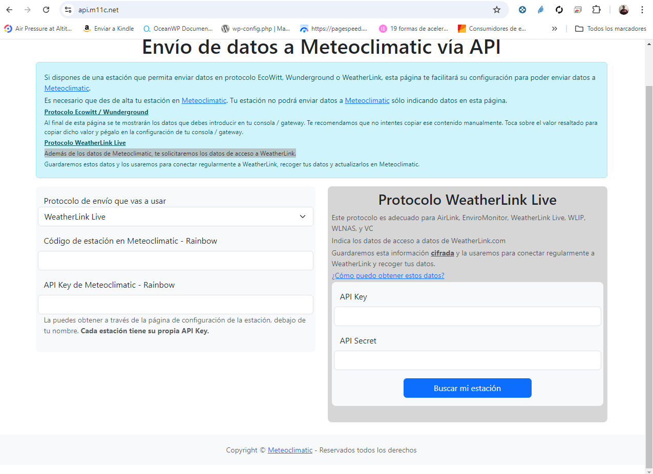 Acceder a https://api.m11c.net y elegir la opción Weatherlink en el desplegable.